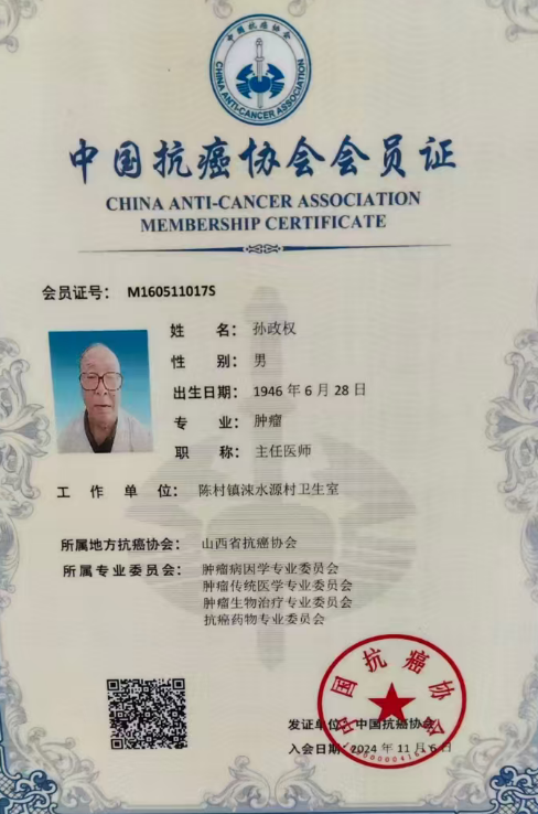 孙政权,男,汉族,山西人,出生于1946年06月,中医全科主任医师,中国抗癌协会会员,扶阳中土疗法创始人,是一位在医学领域具有深厚造诣和丰富经验的专家,在医学领域有着长期且深入的研究与实践。